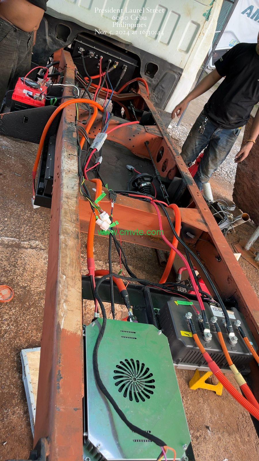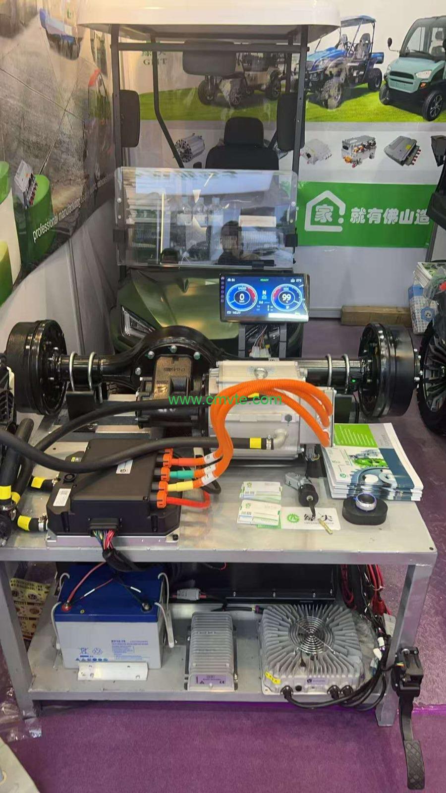 Motor. Motor inverter or controller. gas pedal, gear stall to change from forward and reverse, key switch, lithium battery pack, the battery pack we normally use Lithium Iron Phosphate Battery,prismatic cells, its capacity and dimensions we can customize. Charger on board 144V 3.3KW, 6.6KW China GBT standard or type 2 charge protocol, dashboard meter, DC-DC converter. vaccum brake pump. electric power steering or electric hydraulic steering, compressor for AC. rear axle. The rear axle we can customize its width, ratio, loading capacity for you.